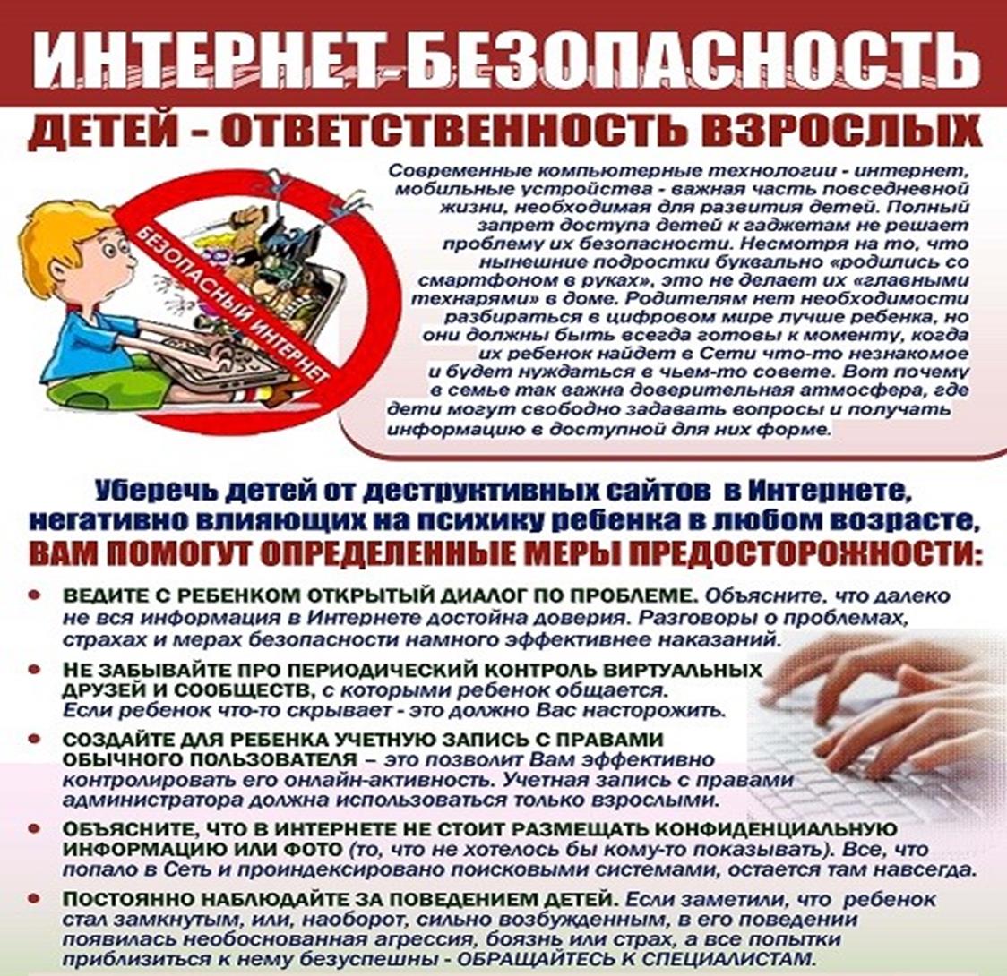 Приучите Вашего ребенка сообщать вам о любых угрозах или тревогах, связанных с Интернетом. Оставайтесь спокойными и напомните детям, что они в безопасности, если сами рассказали вам о своих тревогах. Похвалите их и посоветуйте подойти еще раз в подобных случаях.
