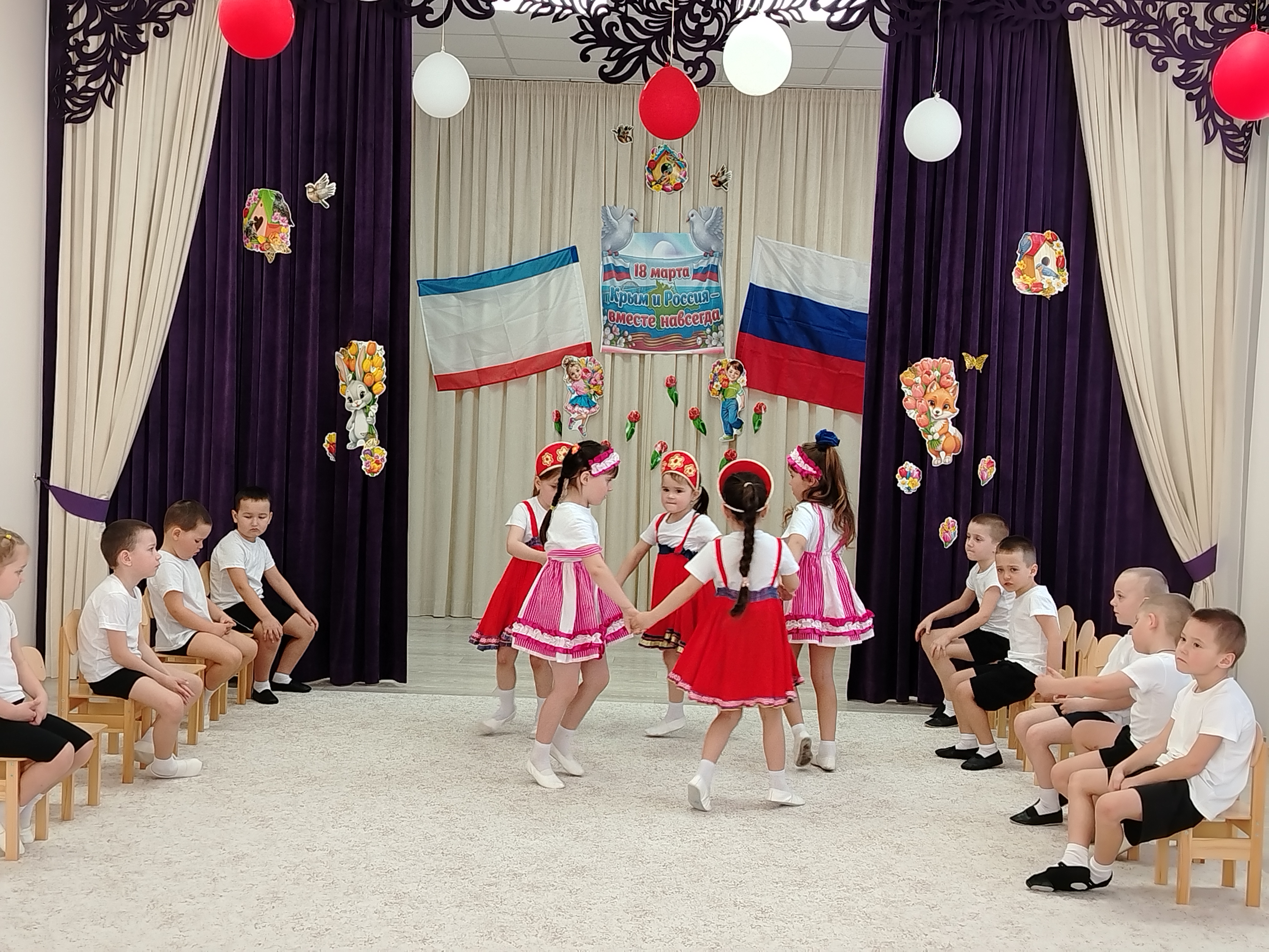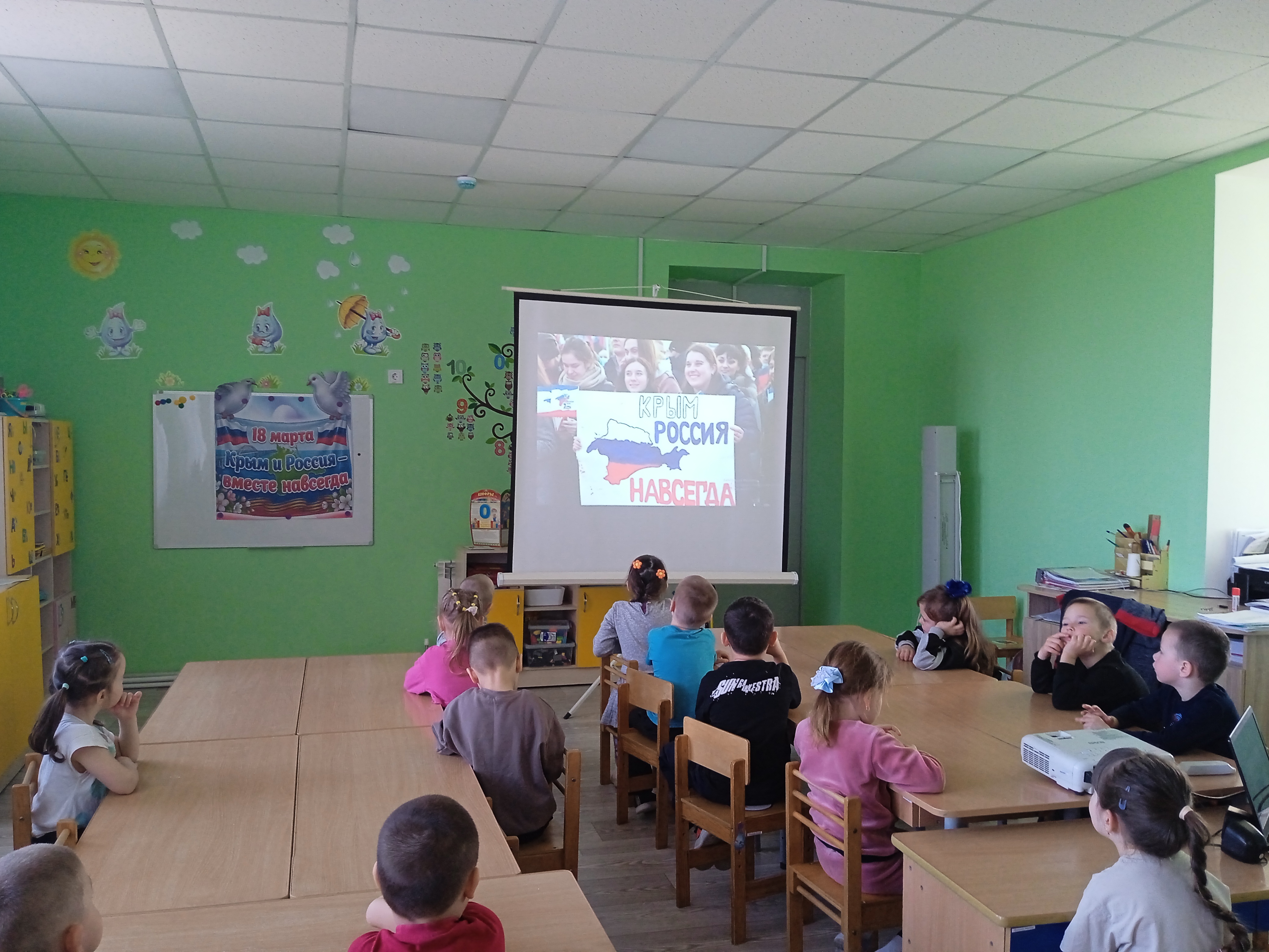 С целью формирования у детей патриотических чувств, уважения к истории, развития интереса к историческим событиям, воспитатели Котюх И.А. и Лисайчук Т.Н. провели для ребят тематические беседы «День воссоединения Крыма с Россией».
